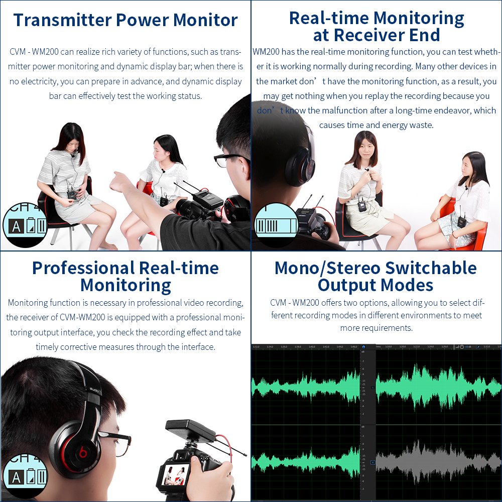Comica CVM-WM100 Plus là phiên bản nâng cấp của CVM-WM100, với 2 bộ transmitter, chuyên dùng cho các buổi phỏng vấn, thu hình chuyên nghiệp. Được trang bị thêm phương thức cấp nguồn bằng củ sạc