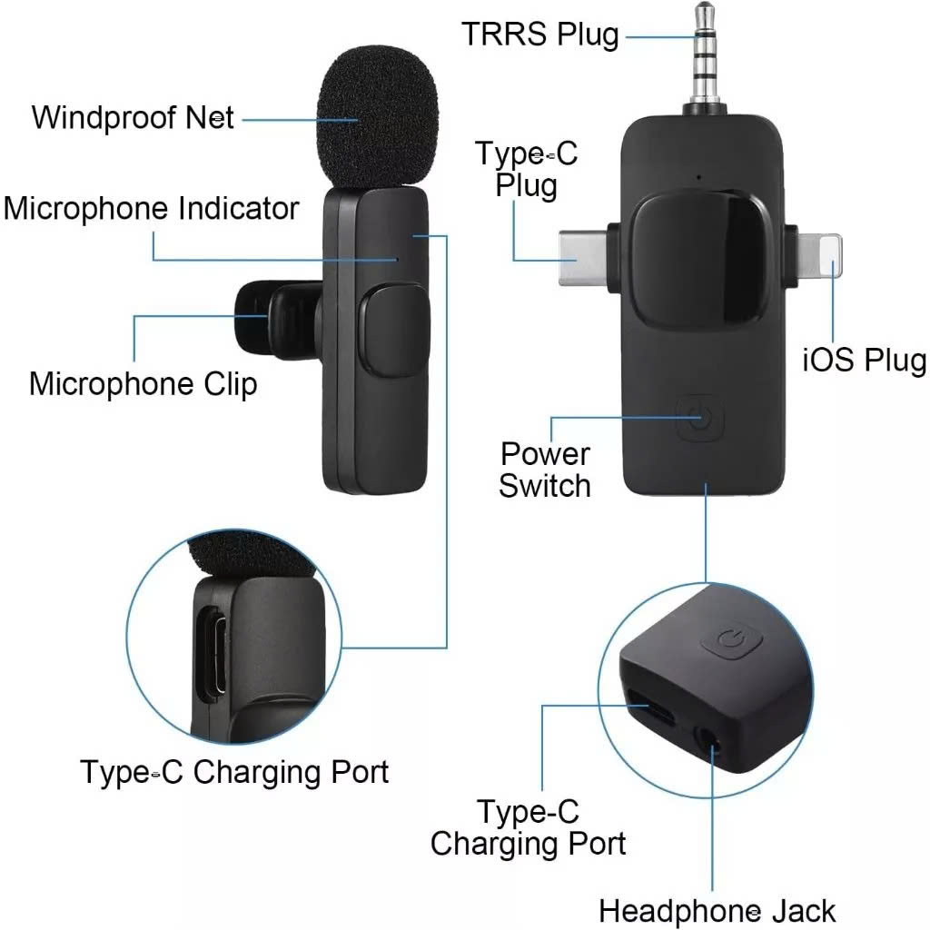 ✨Micro Thu Âm Cài Áo Không Dây 2 Mic 3 Trong 1 Cho Điện Thoại (Android Cổng Type C – Iphone IOS Cổng Lightningg) Máy Tính Bảng PC Laptop Máy Ảnh (Jack 3.5) Loa Smartphone Lọc Tiếng Ồn Xa 20m Quay Video Tiktok Livestream Review Vlog Youtube – Hàng Nhập Khẩu