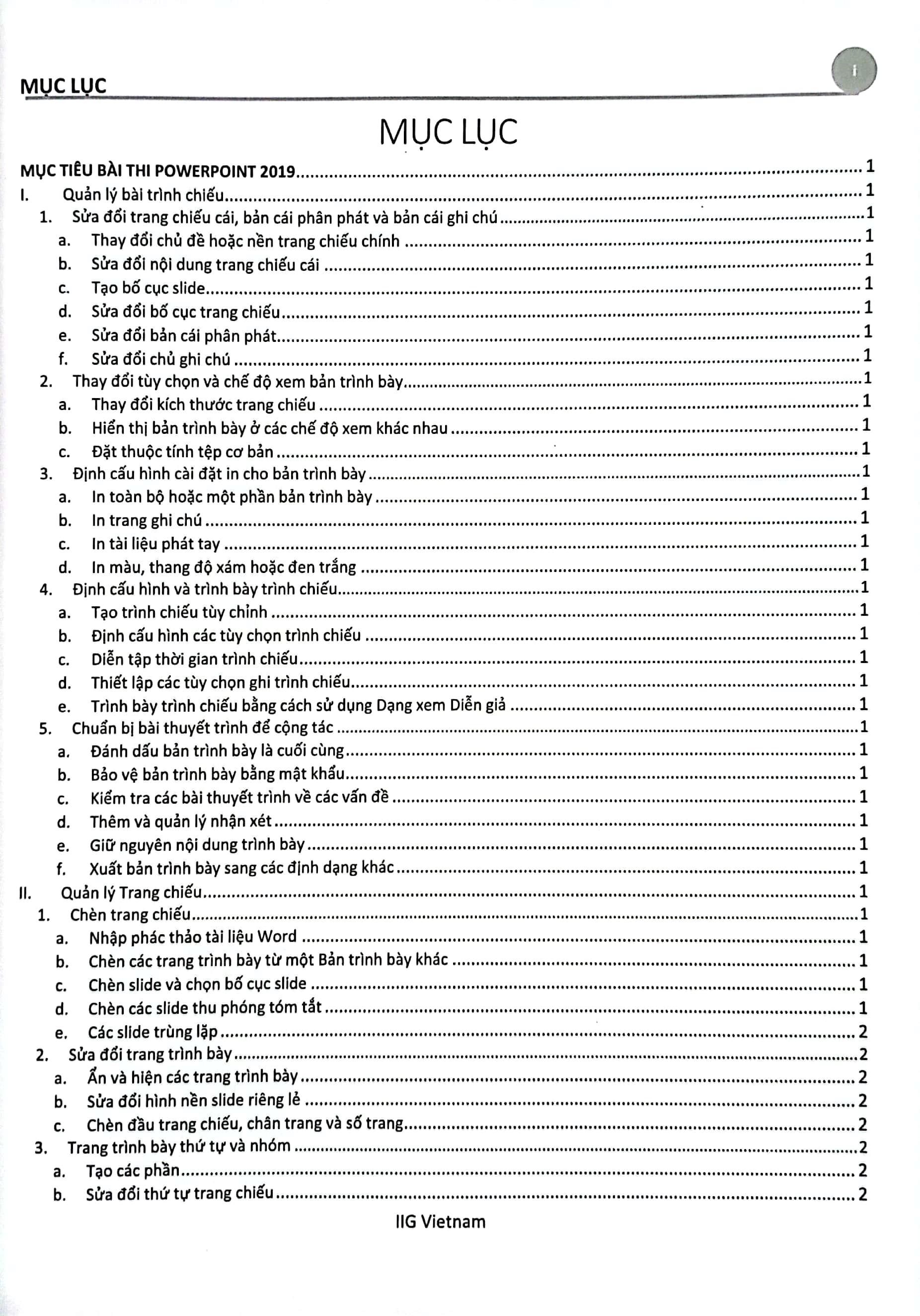 Sách MOS PowerPoint 2019 được chia thành nhiều bài học, mỗi bài học đề cập đến một chủ đề cụ thể, bao gồm: