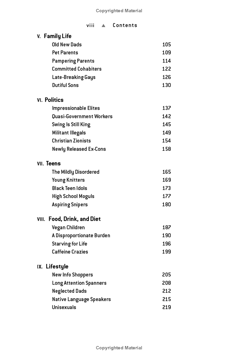 People are retiring but continuing to are turning to are becoming the most sociable people are driving are older than ever and spending more time with their kids than in the past. You have to look at and interpret data to know what's going on, and that conventional wisdom is almost always wrong and outdated. The nation is no longer a melting pot. We are a collection of communities with many individual tastes and lifestyles. Those who recognize these emerging groups will prosper.