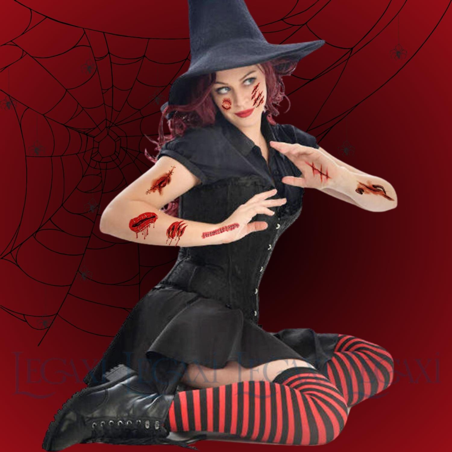 ✨Miếng dán hình xăm kinh dị hóa trang Halloween vết sẹo xước máu giả vết khâu chảy máu vết thương Legaxi