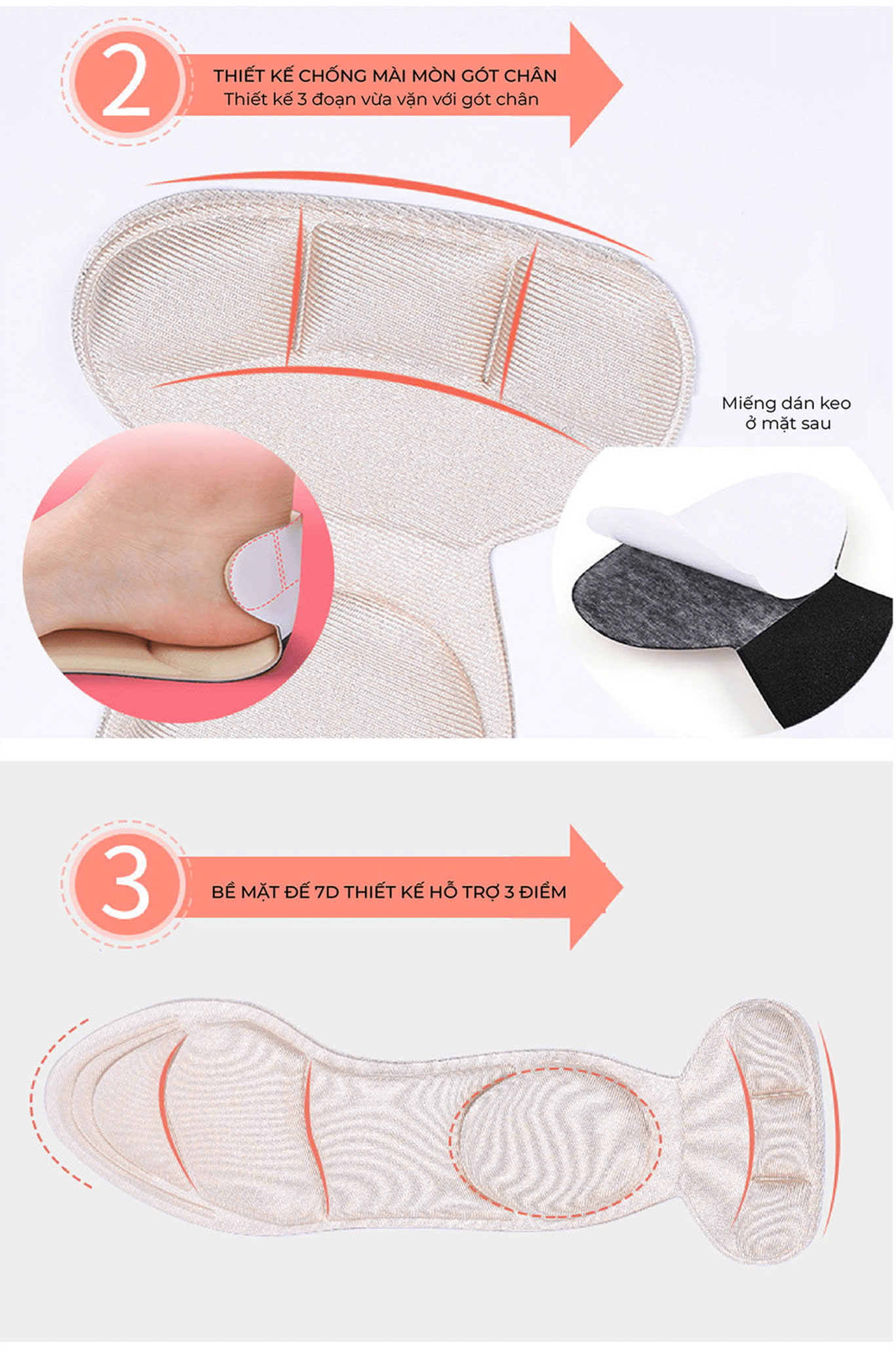 - Công dụng: miếng lót giúp giảm size giày bị rộng, chống trầy gót chân, giảm đau gang bàn chân và giảm thốn gót chân khi phải đi đứng trên giày cao gót hoặc khi mang giày bị rộng