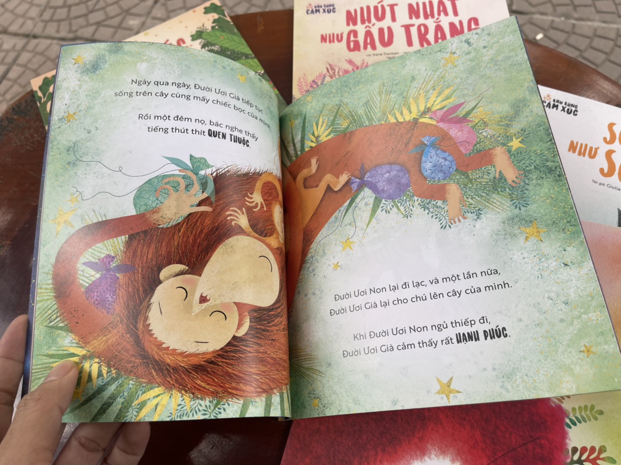 Sợ sệt như sói xám: Sói lúc nào cũng sợ sệt. Nỗi sợ khiến ruột chú cồn cào, mũi chú ngứa ngáy, tai chú run rẩy. Trong một lần bị lạc trong rừng, chú gặp một người bạn mới và nhận ra rằng mình có đủ can đảm để vượt qua nỗi sợ hãi! Câu chuyện này sẽ giúp các bạn nhỏ hiểu hơn về cảm xúc sợ hãi, đồng thời biết cách vượt qua nỗi sợ. Qua các câu chuyện đó, trẻ sẽ quản lí tốt cảm xúc cá nhân, có hành vi và thái độ sống tích cực khi trưởng thành.