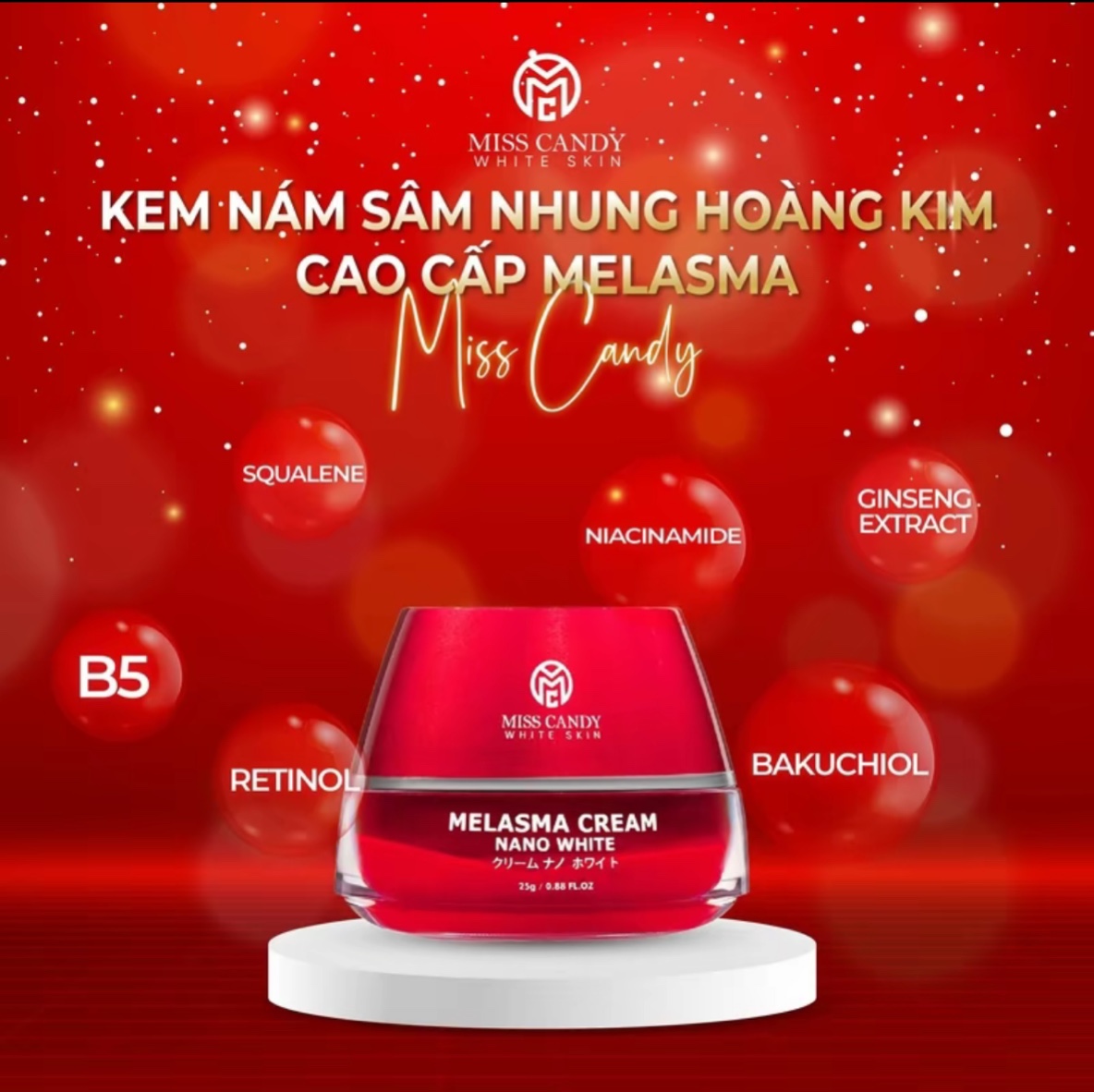 [MISS CANDY] Combo 2 Kem Dưỡng Trắng Da Mờ Thâm Nám Sâm Nhung Hoàng Kim Cao Cấp Melasma Cream Nano White MISS CANDY 25g, Giúp Tái Tạo Da Bị Nhiễm Corticoid, Phục Hồi Làn Da
