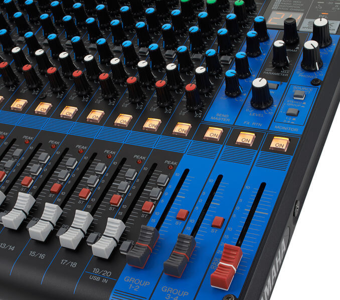 - Tối đa 16 Mic / 20 Line Input (12 mono + 4 stereo)