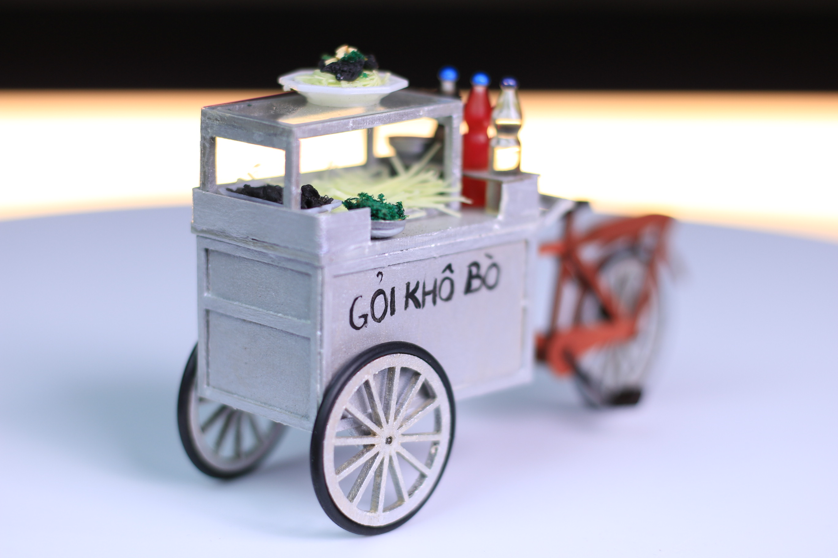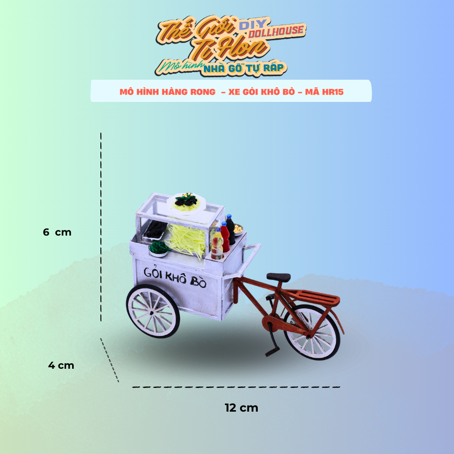 Mô Hình Xe Hàng Rong Thu Nhỏ Bằng Gỗ Ở Sài Gòn - Xe Gỏi Khô Bò - HR15 KHÁCH LƯU Ý - SẢN PHẨM TỰ SƠN VÀ LẮP RÁP - SẢN PHẨM CHƯA BAO GỒM KEO