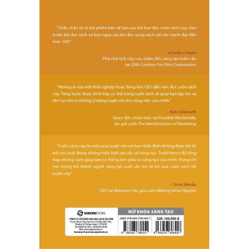 Mở khóa sáng tạo Tác giả Todd Henry --- MỞ KHÓA SÁNG TẠO Tạm biệt những lần “bí” ý tưởng Có phải ngành nghề nào cũng cần có sáng tạo? Ngày nay, sự sáng tạo được ngư...