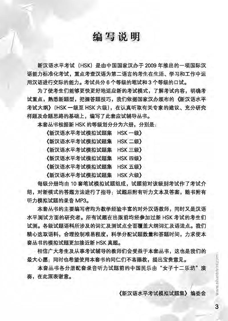 Đây là phiên bản mới của bộ đề mô phỏng đề thi HSK, được biên soạn trên cơ sở chỉnh sửa bộ đề phiên bản cũ. Sách gắn liền với đề cương mới: Phiên bản
