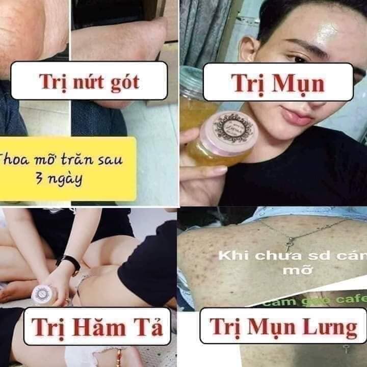 - cho body Bạn hoà mỡ trăn với bã cafe chà lên người 15 phút trước khi tắm sẽ giúp lấy sạch đi những tế bào chết trên cơ thể Để tẩy tế bào chết cho face và body cùng lúc thì bạn thoa mỡ toàn thân rồi xông hơi 10-15p bằng vỏ bưởi…vừa massage da sau đó lấy khăn thấm phần dầu thừa đi, rồi đợi 10-15p đi tắm sạch lại.\