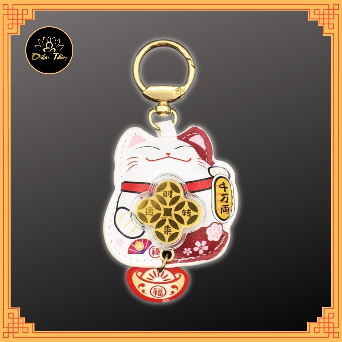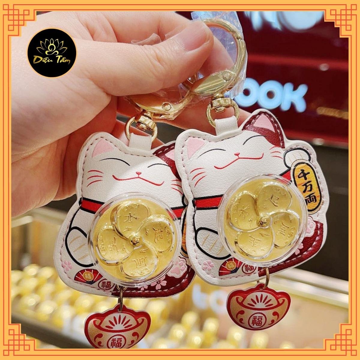 Móc Khóa Mèo Thần Tài Xoay Mạ Vàng