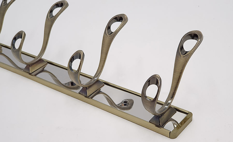 Thân chính của móc treo được làm từ Nhôm với lớp mạ vàng Đồng giả cổ, cho sản phẩm sang trọng và tinh tế