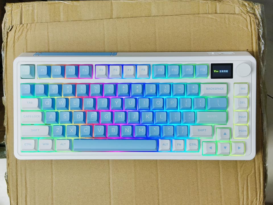 CMK75SAM được hãng FL·Esports vô cùng ưu ái. hãng đã mạnh dạn trạng bị thêm cho em bàn phím này màn hình hiển thị TFT đầy màu sắc. Màn hình TFT này sẽ hiển thị các cài đặt khác nhau như ngày, giờ, chế độ hệ thống đang hoạt động, chế độ kết nối,…Nó cũng có thể được tùy chỉnh với các hình ảnh và hoạt ảnh gif khác nhau. Người dùng có thể tải tối đa 5 hình ảnh và 1 ảnh động gif trên cấu hình bàn phím.