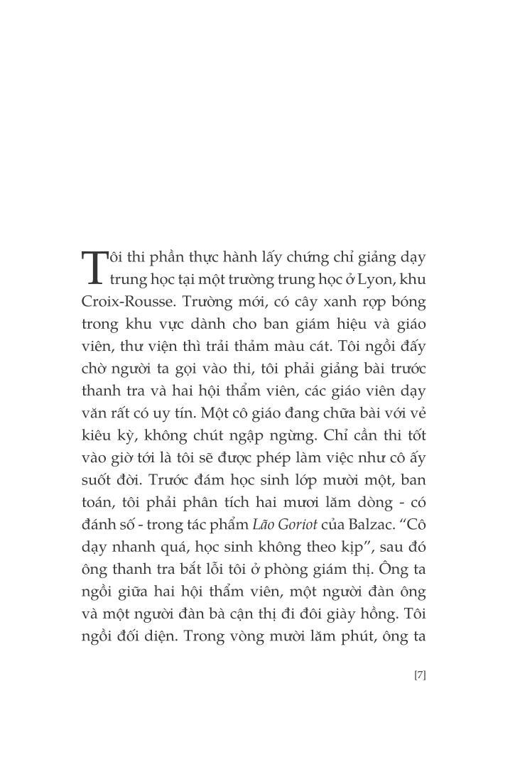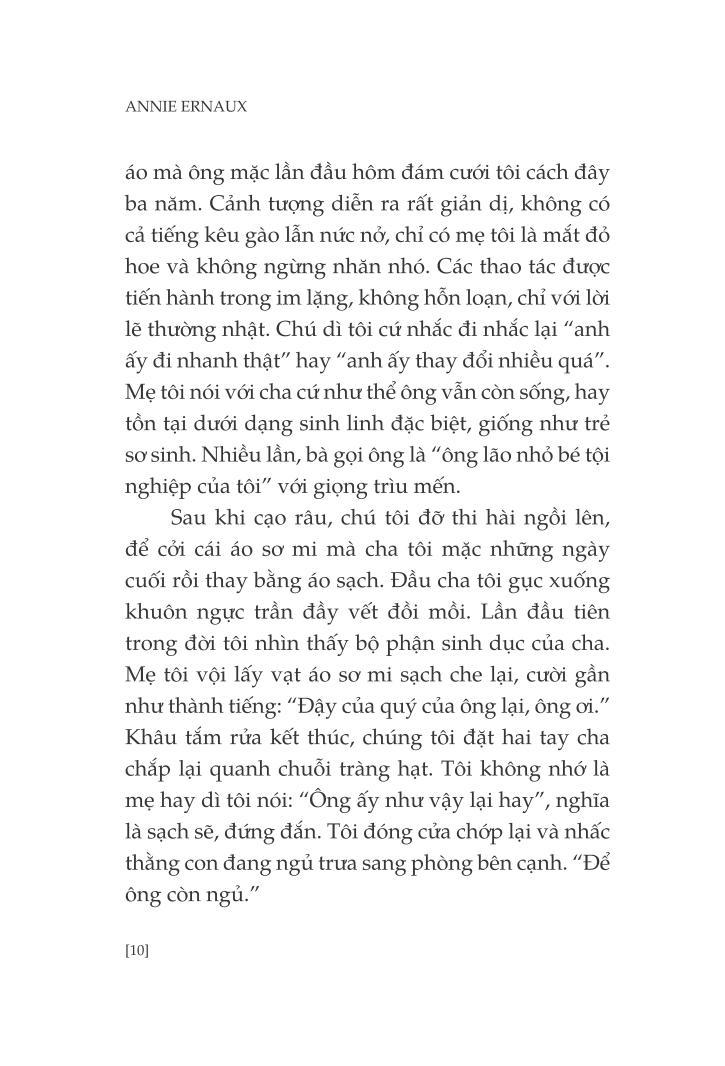 Một người cha không bao giờ bước chân vào viện bảo tàng, chỉ đọc báo địa phương, không dùng gì khác ngoài con dao Opinel của riêng mình để ăn. Một người cha xuất thân nông dân rồi trở thành công nhân và cuối cùng là chủ một tiệm cà phê kiêm cửa hàng tạp phẩm. Một người cha luôn lo lắng bị nhầm “vị trí”. Cũng người cha ấy lấy làm tự hào về cô con gái nhờ được học hành tử tế mà đã đặt chân được vào giới tiểu tư sản. Nhưng đằng sau đó là khoảng cách, là những đớn đau, giằn vặt giữa cha và con.