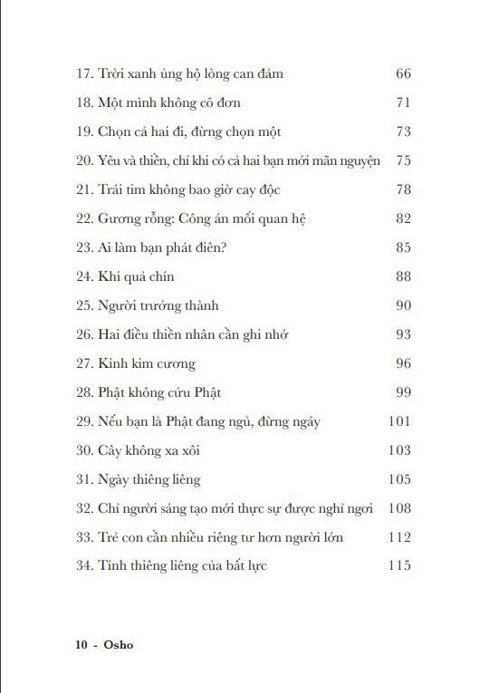 Osho không chỉ là một thiền nhân, một nhà huyền môn mà còn là một triết gia, một học giả, một nghệ sĩ thích “chơi” với ngôn từ. Vì vậy, những lời giảng của ông vừa đậm tính triết lý lẫn tính thơ và tất nhiên không thể không kể đến tính thiền – tính khai phóng tư tưởng.