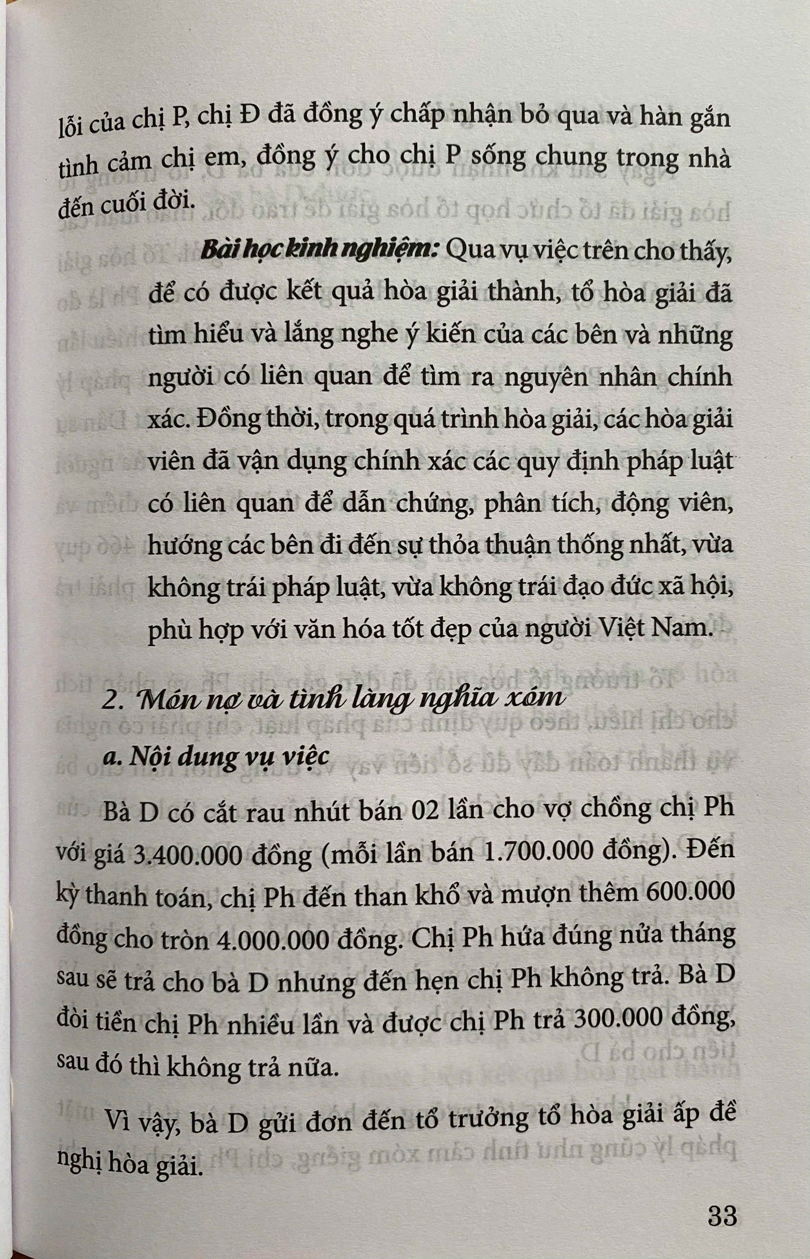 Mua tại TiktokViệc hòa giải các mâu thuẫn, tranh chấp, vi phạm pháp luật trong cộng đồng đã góp phần quan trọng trong việc giữ gìn an ninh trật tự, an toàn xã hội, phòng ngừa vi phạm pháp luật và tội phạm; hạn chế đơn thư, khiếu kiện, tiết kiệm thời gian và tiền bạc của cơ quan nhà nước và nhân dân, đồng thời thông qua quá trình hòa giải đã góp phần truyền bá, hình thành trong mỗi công dân ý thức thượng tôn pháp luật....Luatvietbook xin trân trọng mời bạn tham khảo cuốn sách " MỘT SỐ VỤ VIỆC ĐIỂN HÌNH TRONG CÔNG TÁC HOÀ GIẢI Ở CƠ SỞ" Nội dung cuốn sách gồm các vụ việc như sau