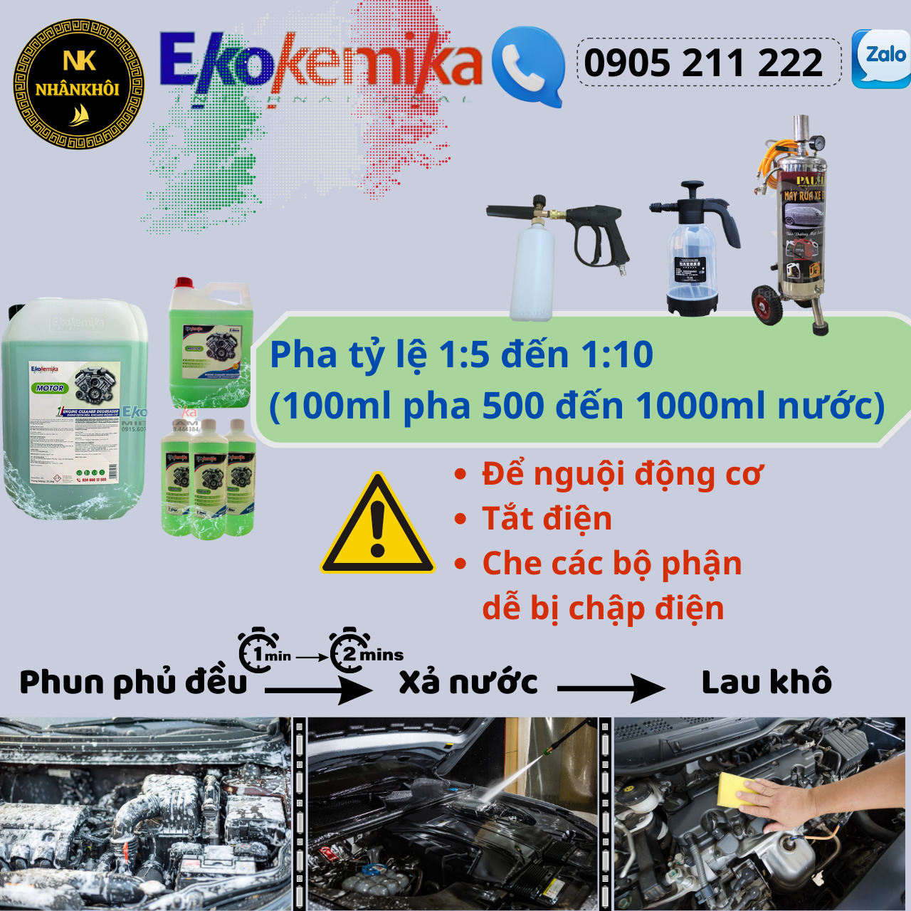 Dung dịch rửa khoang động cơ, khoang máy - Làm sạch dầu mỡ Motor - Ekokemika Tạo ra loại bọt hoạt tính loại bỏ 95% bụi bẩn, dầu và chất tĩnh điện trên khoang động