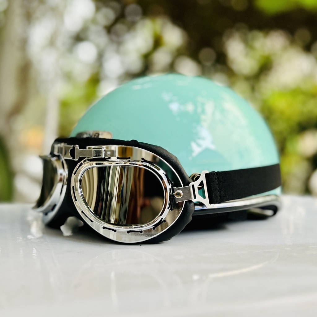Mũ bảo hiểm nửa đầu freesize Rona hali viền bạc kèm kính phi công bạc Mũ bảo hiểm nửa đầu Rona haly viền bạc kèm kính phi công bạc cho nam và nữ đi xe