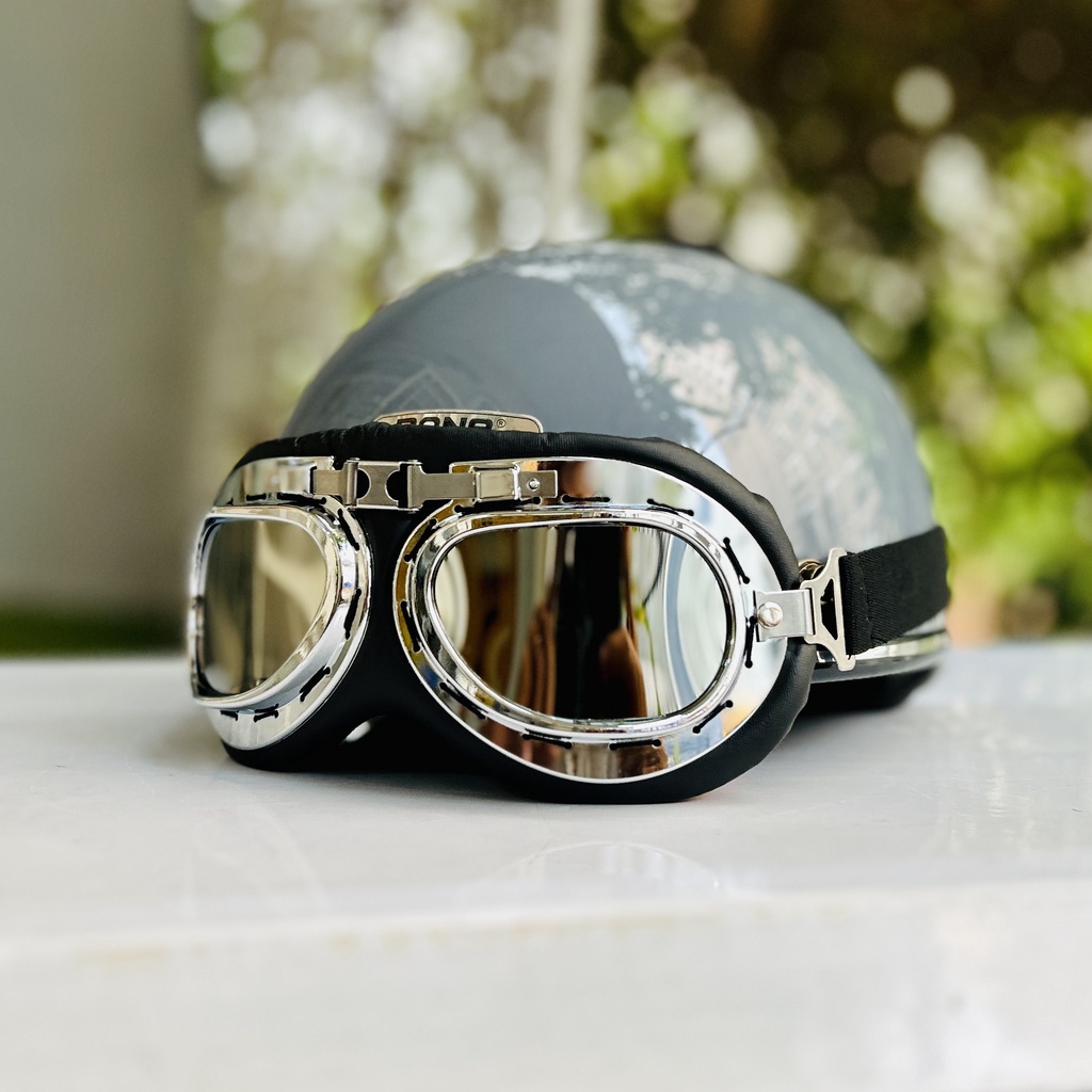 Mũ bảo hiểm nửa đầu Rona haly viền bạc kèm kính phi công bạc cho nam và nữ đi xe máy