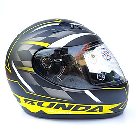 Mũ bảo hiểm fullface chính hãng Sunda 2000c đen nhám tem vàng là sản phẩm được cải tiến từ mẫu Andes/Sunda 2000A vốn được sản xuất để xuất khẩu phục vụ chủ yếu cho thị trường