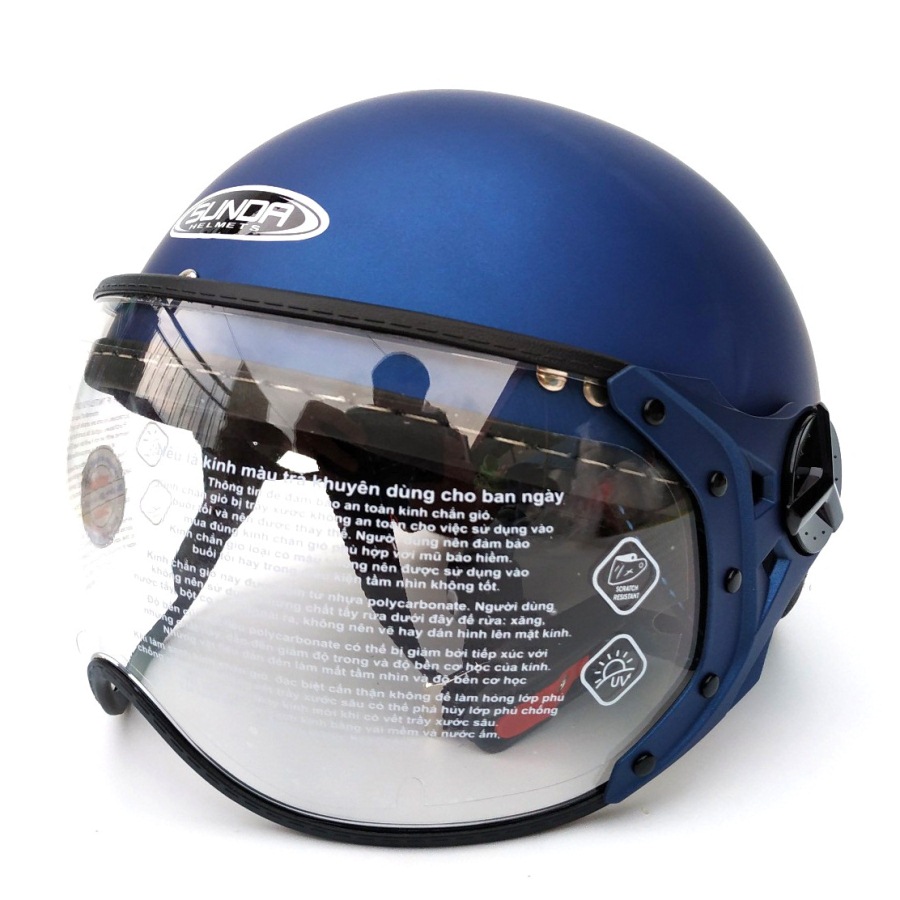 Mũ bảo hiểm nửa đầu có kính Sunda 180B trơn là phụ kiện không thể thiếu khi đi xe mô tô, xe máy, mang lại sự an toàn và phong cách thời trang cho người sử