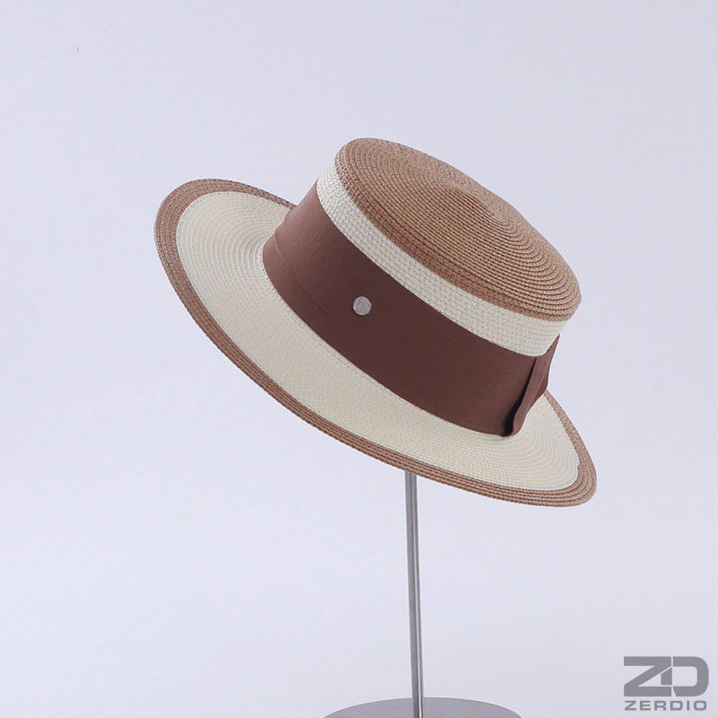 Mũ cói rơm vành phẳng nữ mùa hè phiên bản Hàn Quốc chống nắng UV cho kỳ nghỉ Nón đi biển Paris thời trang hàng đầu Pháp Chất liệu cói