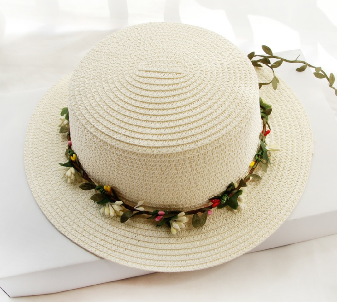 Mũ cói rơm vành phẳng nữ mùa hè phiên bản Hàn Quốc chống nắng UV cho kỳ nghỉ Nón đi biển Paris thời trang hàng đầu Pháp Chất liệu cói