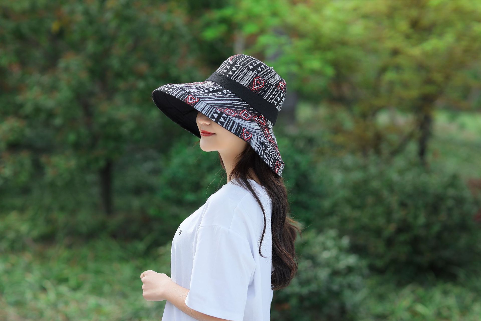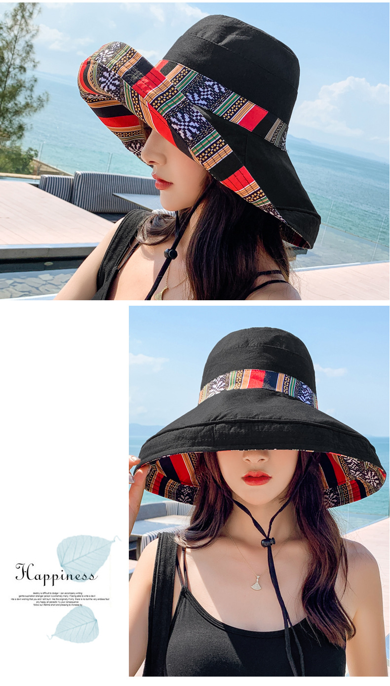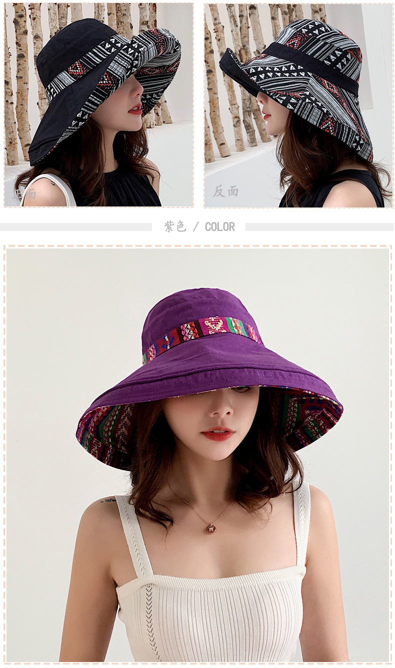 ✨Mũ đi biển đẹp rộng vành nón chống nắng đội 2 mặt gấp gọn họa tiết thổ cẩm chống tia UV thoáng mát dona23062301