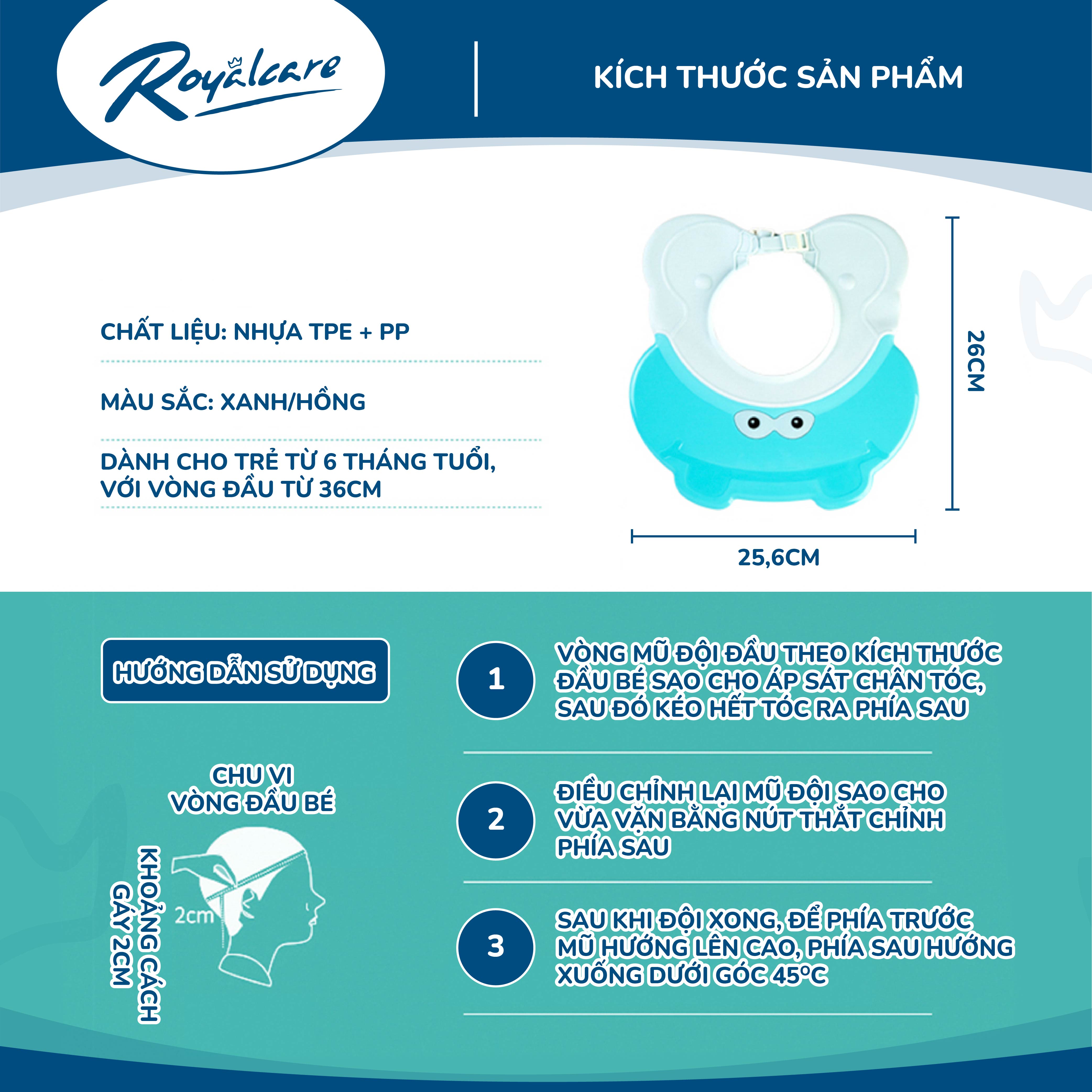 Mũ đội đầu Hà Mã Royalcare 702 sẽ mang đến cho trẻ những phút giây thoải mái khi tắm gối, bé không còn cảm thấy khó chịu khi bị nước bắn vào mắt.