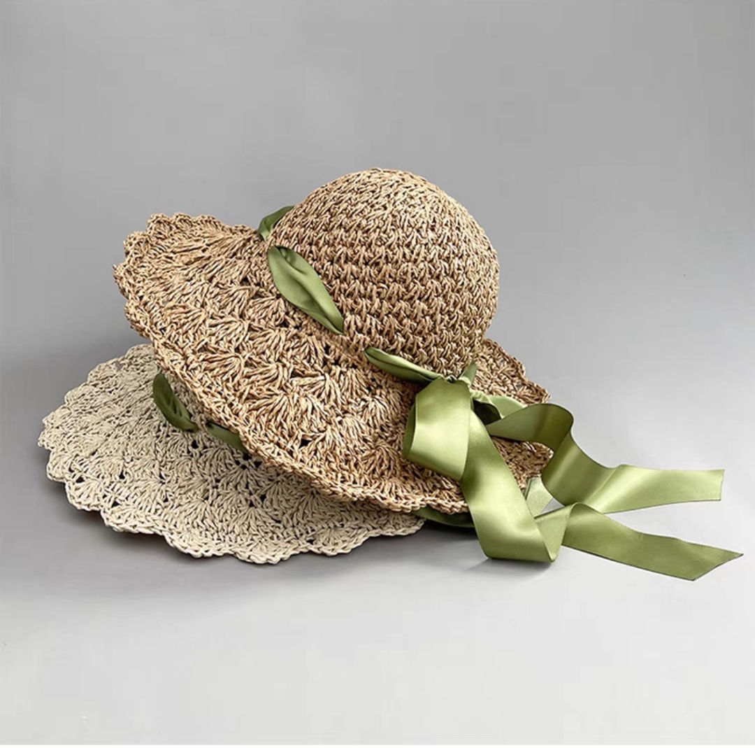 Mũ cói rơm vành phẳng nữ mùa hè phiên bản Hàn Quốc chống nắng UV cho kỳ nghỉ Nón đi biển Paris thời trang hàng đầu Pháp Chất liệu cói