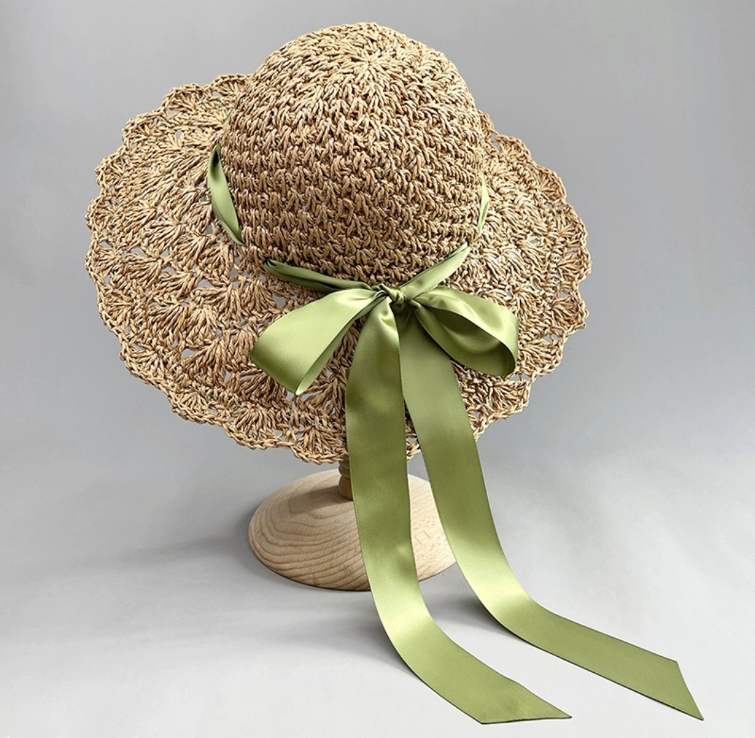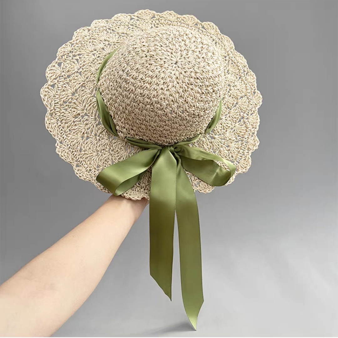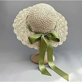Nón mũ Nữ cói Dệt Móc Tay thoáng khí Có Thể Gập Đi Biển