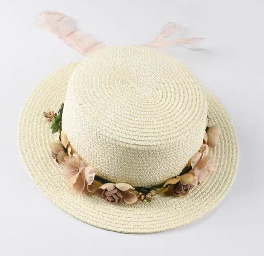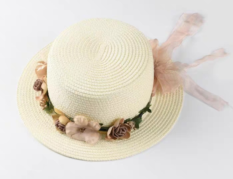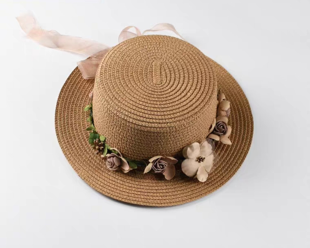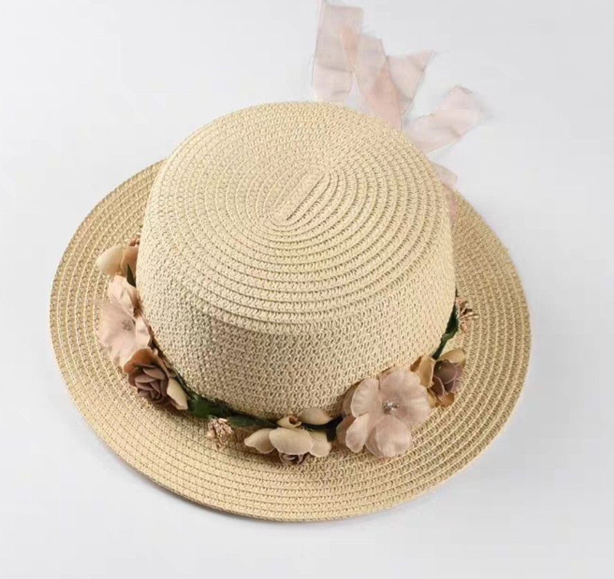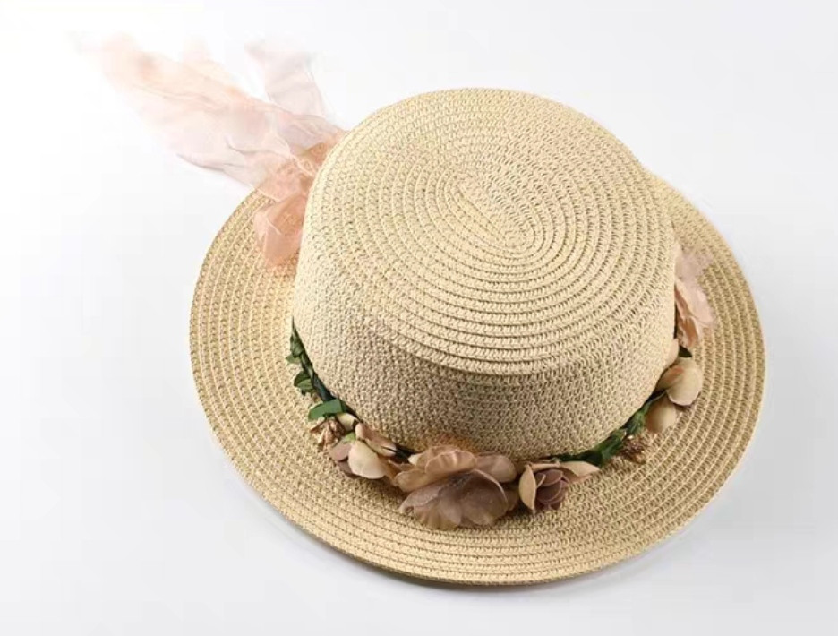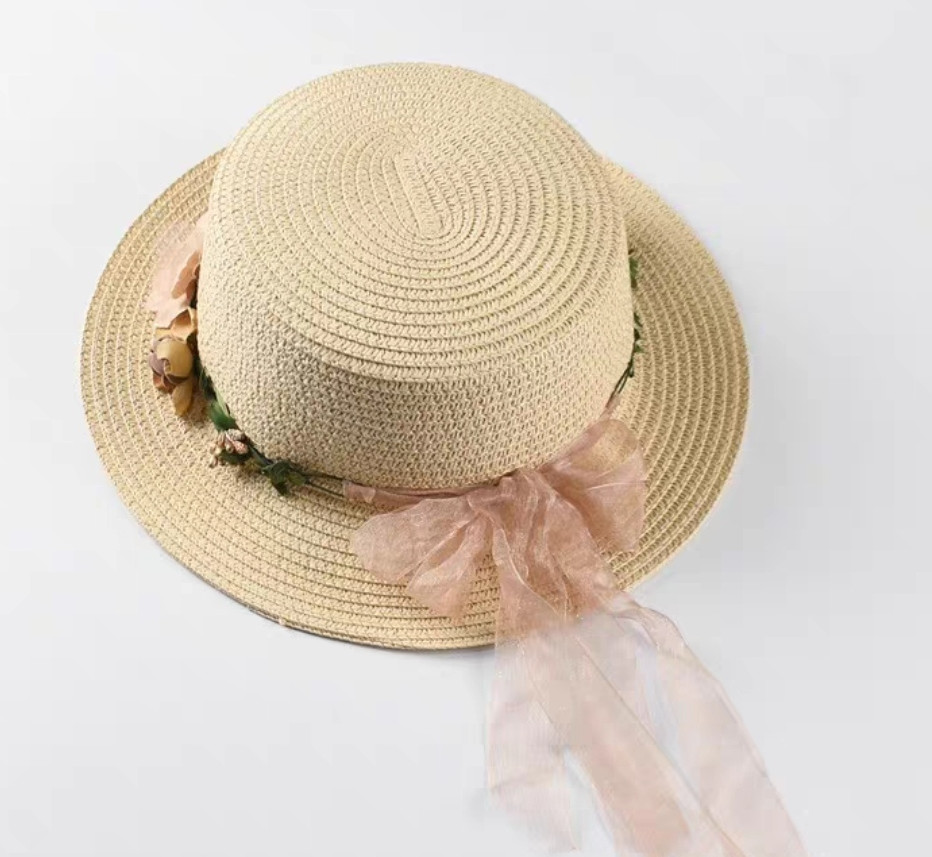 Mũ cói rơm vành phẳng nữ mùa hè phiên bản Hàn Quốc chống nắng UV cho kỳ nghỉ Nón đi biển Paris thời trang hàng đầu Pháp Chất liệu cói