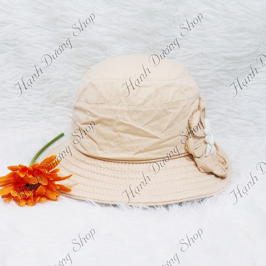 Mũ rộng vành nữ gắn hoa 9 cánh dễ thương, vành rộng 7cm, chất liệu vải cotton oát cao cấp oát mềm mại - Hạnh Dương