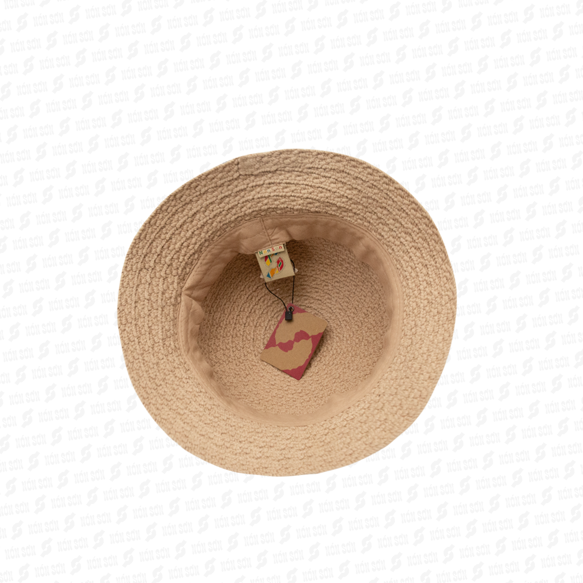 MŨ ĐI BIỂN dành cho nữ. ️️️ Mũ được móc bằng sợi len nhân tạo cứng cáp không bị vỡ form, gắn tag chữ M siêu xinh. Phối đồ dễ dàng mix với váy dài,