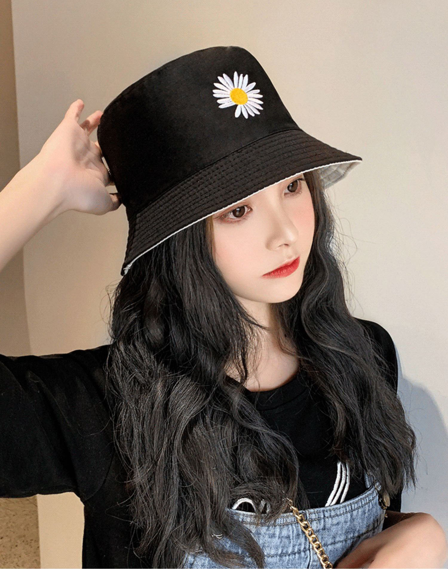 Nón có sắc màu trơn đơn giản, thêu hoa cúc nhưng cá tính với màu đen, trắng lôi cuốn, màu chủ đạo, dễ dàng phối cùng các loại trang phục khác nhau.