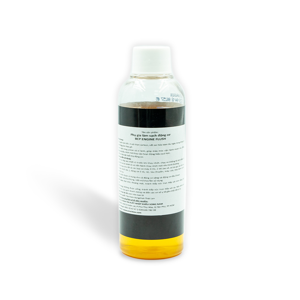 • Không chồng chất quá 6 Thùng lên nhau nhằm tránh biến dạng những chai ở lớp dưới cùng TẠI SAO PHẢI SÚC RỬA ĐỘNG CƠ THƯỜNG XUYÊN? Như bạn đã biết, sau một thời gian dài sử dụng, những muội than carbon sản sinh trong quá trình đốt cháy không hoàn toàn của động cơ  sẽ tích tụ và bám lại vào xupap, đầu piston, thành xi lanh hay bugi. Ngoài ra, nếu bạn đang sử dụng công nghệ động cơ cũ, chất lượng nhiêu liệu không tốt và vận hành xe không đúng cách cũng khiến cho lượng muội than này tăng nhanh. Cho dù hiện nay, nhiều hãng đã cho ra mới những công nghệ mới tối ưu hơn, hạn chế việc hình thành muội than nhưng với điều kiện nhiên liệu chưa thật sự được đảm bảo tại Việt Nam hiện nay thì chắc chắn bạn cũng phải chú ý hơn tới việc làm sạch động cơ. Khi lớp muội than này dày lên, nó có thể làm xước thành xi lanh, ảnh hưởng tới tỉ số nén động cơ khiến máy chạy ì, ồn, giật cục và tốn nhiều nhiên liệu hơn. Do đó, bạn cần phải súc động cơ để tẩy sạch lớp cặn bẩn này, tránh gây hại đến xe. LÀM THẾ NÀO ĐỂ LOẠI BỎ MUỘI CARBON? Xe máy gần như phương tiện đi lại chủ yếu của mọi người dân Việt Nam. Mặc dù vậy, có rất ít người quan tâm đến việc làm sao để xe luôn bền, vận hành êm ái như lúc mới mua. Một số người cho rằng, chỉ cần đổ xăng tốt, thay nhớt cao cấp, đắt tiền là được.  Điều này đúng nhưng chưa đủ. Lớp muội than bám lâu ngày trong động cơ nếu không được làm sạch sẽ ảnh hưởng đến chất lượng xe rất nhiều. Để loại bỏ lớp cặn bẩn này, bạn không nhất thiết phải đem xe ra hãng hay tiệm rửa xe, có một cách vừa tiết kiệm thời gian và chi phí của bạn hơn rất nhiều. Phụ gia vệ sinh động cơ Engine Flush chính là sự lựa chọn tối nhất, mang lại hiệu quả tối ưu cho xe của bạn.   VỀ BCP LUBRICANTS BCP Lubricants là thương hiệu dầu nhớt hàng đầu của Thái Lan do Tập Đoàn Bangchak Petroleum Thái Lan sản xuất và phân phối toàn cầu. Tại Việt Nam, dầu nhớt BCP được các garage xe tải, xe ô tô và các tiệm sửa xe máy tin tưởng lựa chọn cho khách hàng vì chất lượng cao và giá cả rất cạnh tranh. Tập Đoàn Năng Lượng Bangchak là nhà sản xuất năng lượng nổi tiếng của Thái Lan với hơn 50 năm kinh nghiệm trong ngành tinh chế dầu mỏ. Bangchak là một trong hai nhà sản xuất dầu nhờn lớn hàng đầu của Thái với công suất 120,000 thùng mỗi ngày.