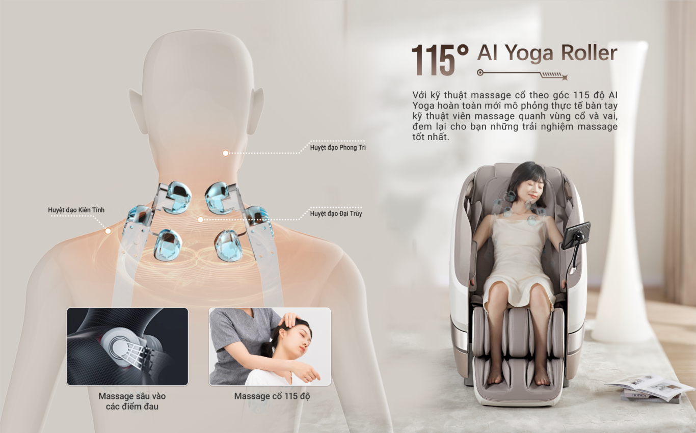 ̃Kỹ thuật massage 115 AI Yoga - Mô phỏng động tác kéo giãn của yoga, đả thông kinh lạc ở vùng vai cổ gáy.