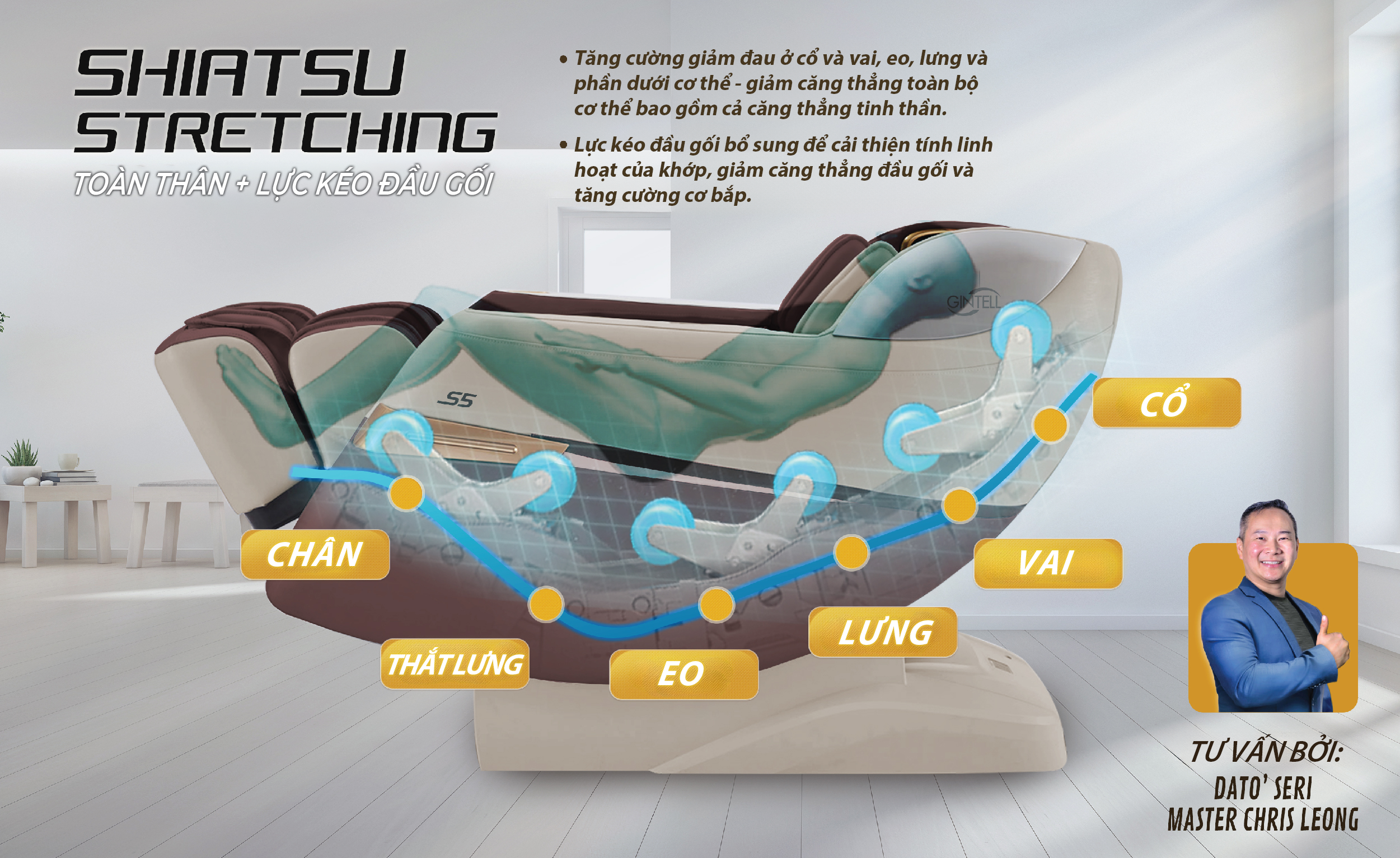Chế độ giãn cơ Shiatu: Kéo giãn khớp xương & kích thích tiết bã nhờn ở các khớp sụn.