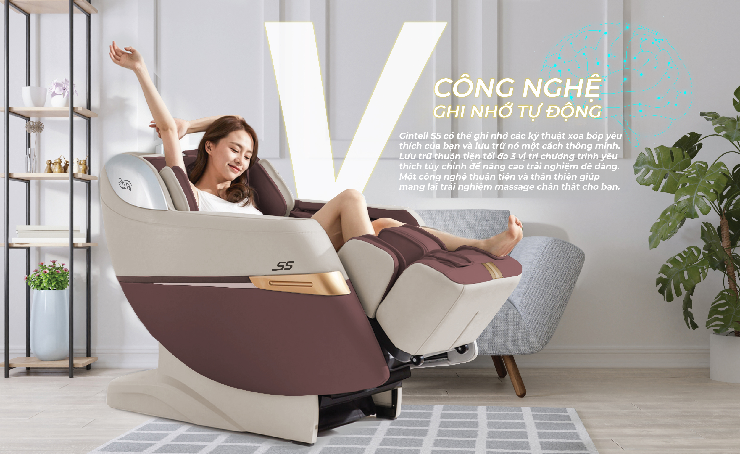 GHẾ MASSAGE GINTELL S5 SUPERCHAIR * TÍNH NĂNG NỔI TRỘI * Chức năng điều khiển giọng nói: Đơn giản hoá các bài điều khiển massage. Chế độ giãn cơ Shiatu: Kéo giãn khớp xương & kích thích tiết b...