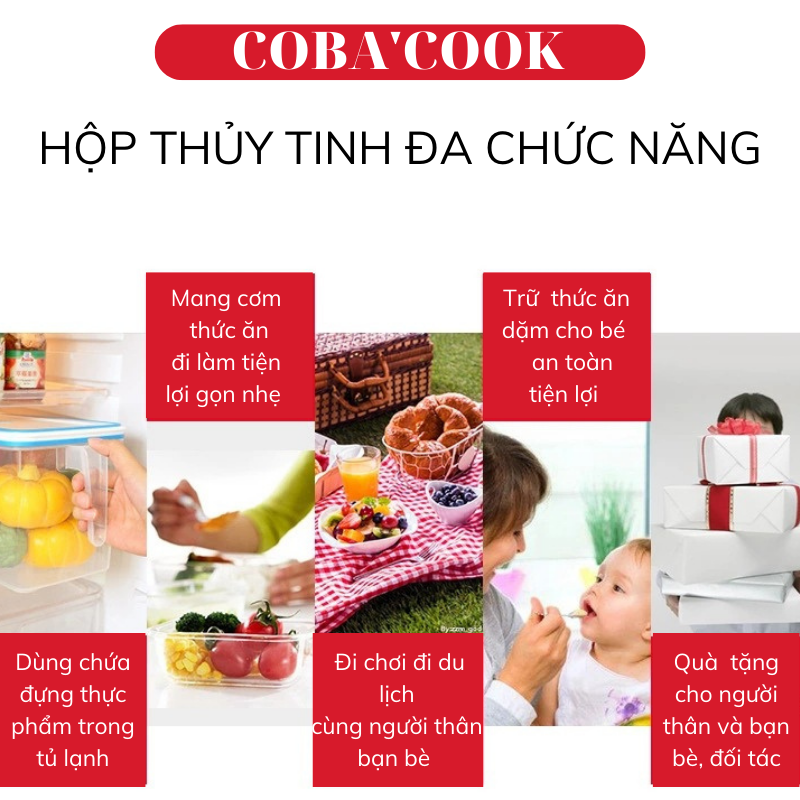 • Hộp thủy tinh có thể sử dụng thay thế cho bát thủy tinh thố thủy tinh sử dụng hàng ngày