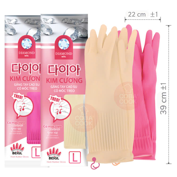 Bộ 2 đôi Găng tay cao su rửa chén nhà bếp xuất Hàn Quốc siêu dai có móc treo 31cm - Thương hiệu: BEIGL- Hàn Quốc - Xuất sứ thương hiệu: Hàn Quốc - Sản