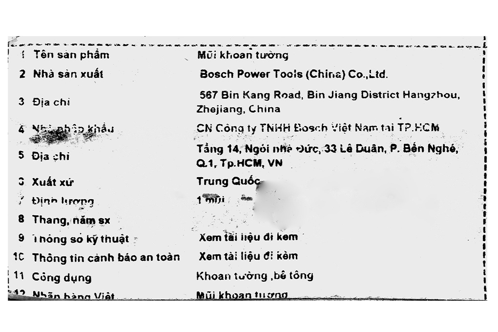 Nhà nhập khẩu: CN Công ty TNHH Bosch Việt Nam tại TP.HCM