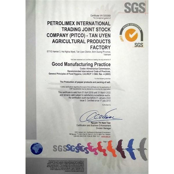 Sản phẩm được chứng nhận đạt chất lượng vệ sinh an toàn thực phẩm: HACCP, GMP, ISO 22000:2005