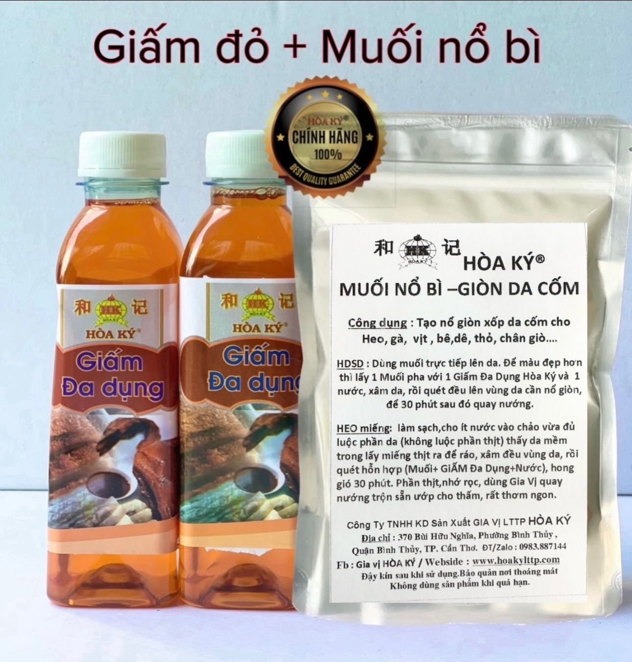 HDSD : Dùng muối trực tiếp lên da. Để màu đẹp hơn thì lấy Muối nổ pha với Giấm Đa Dụng Hòa Ký , xâm đều bề mặt da, rồi quét đều vùng da cần nổ giòn, để 30phút – 1 tiếng ( tùy miếng thịt nhỏ lớn), sau đó quay nướng.