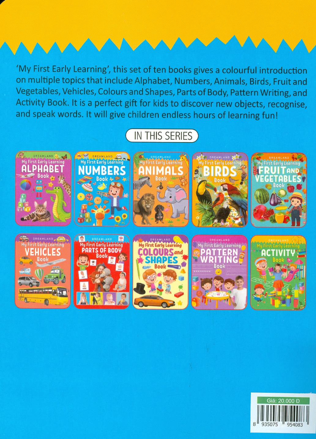 Mua tại Tiktok'My First Early Learning' gồm 10 cuốn sách:- Bảng chữ cái, Số, Động vật, Chim, Trái cây và Rau củ, Màu sắc và Hình dạng, Các bộ phận của Cơ thể, Viết theo Mẫu và Hoạt động. Bộ sách vui nhộn và mang tính giáo dục với những hình ảnh dễ thương sống động này là sự lựa chọn tốt nhất cho trẻ em.