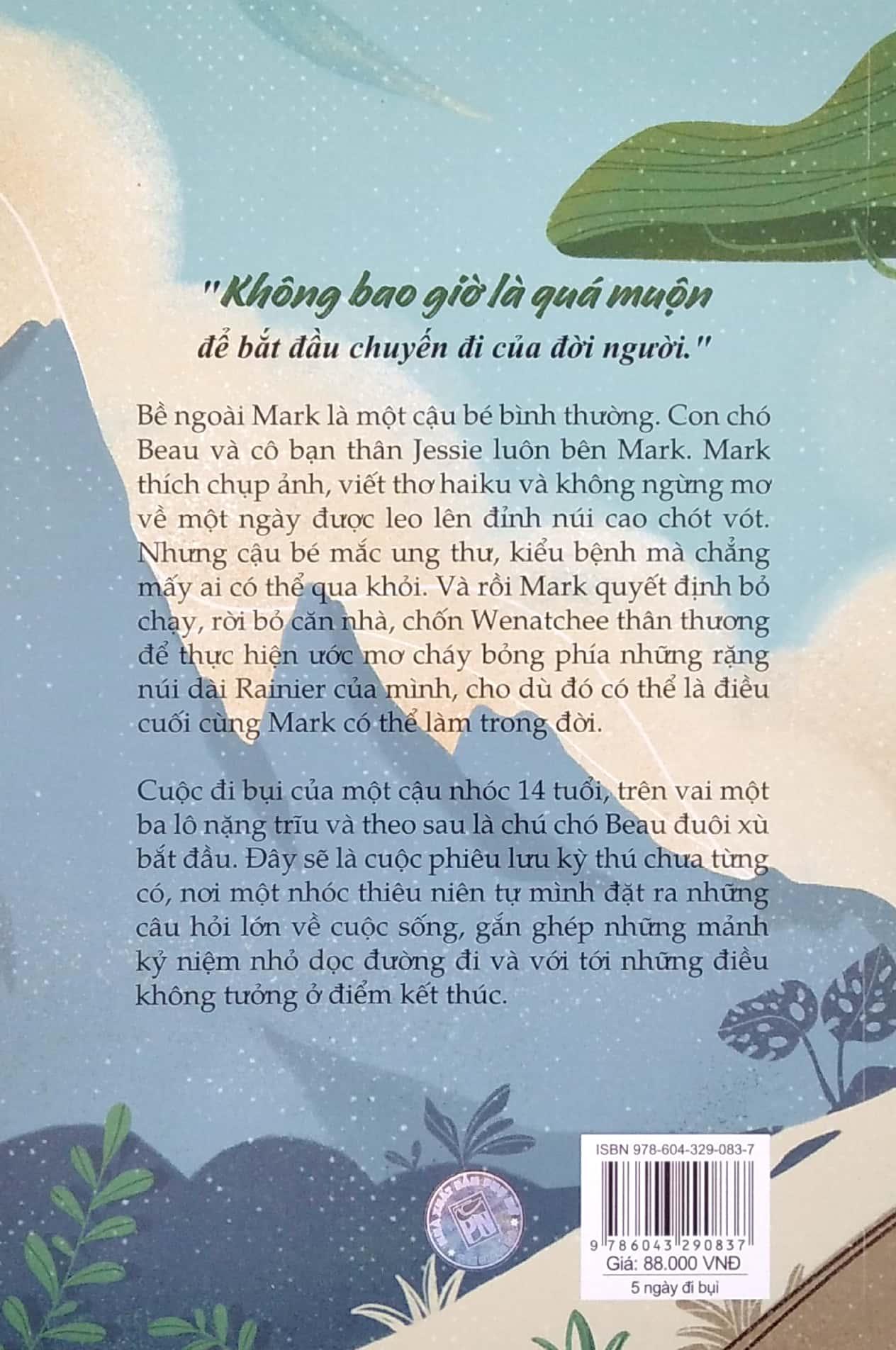Chuyến hành trình năm ngày của Mark và Beau bắt đầu. Suốt hơn 13 chương truyện là hành trình bỏ nhà đi với biết bao trải nghiệm dọc đường đi của Mark và chú chó Beau. Khởi đầu bằng cái mặt bị tẩn be bét bởi đám côn đồ ở Seattle. Thằng nhóc ốm yếu như Mark bị trấn lột sạch tiền và bỏ lại ở cái góc dơ bẩn đầy thùng rác và những thứ bỏ đi - cách mà Mark vẫn nhìn nhận về chính m.ình. Rồi những khi bị nước sông siết lạnh cuốn trôi mà cả nó và Beau trong tích tắc đã bước qua thế giới bên kia. Những lần chui lủi, trốn vé xe, tàu, nói dối cảnh sát và qua mặt "đám người lớn phức tạp". Mark đã làm được nhiều hơn bất cứ một người bình thường nào chứ chưa nói đến một đứa nhóc lớp 8 dặt dẹo. Nhưng quan trọng hơn cả, suốt dọc đường đi, Mark nhận thêm tình yêu thương từ những con người tốt bụng chẳng quen xung quanh. Tình yêu thấm đượm trong bọc thức ăn của những người phụ nữ nấu bếp người Mexico, cái nháy mắt cười tinh anh của cô bé "nói huyên thuyên không ngừng" trên chuyến xe buýt đến Wenatchee và cả ông chú cho Mark đi nhờ trên đường ngược bão tuyết lên núi. Mark đã không cưỡng được mà mở lòng với những con người nhỏ bé nhưng ấm nóng tình thương người đó, để nghe và hiểu câu chuyện của họ. Rồi thằng bé nhận ra nó không một m.ình. Mặc cho sự cứng đầu cố chấp và trái tim như đang mất dần niềm tin vào cuộc sống khi từng cơn đau cứ dộng từng nhịp trong cái đầu trọc trơ của nó, Mark có thêm động lực để hoàn thành chuyến đi nó hằng mong ước.