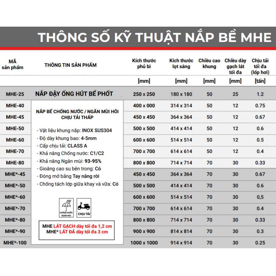 Cấp chịu tải CLASS A (ZAVAK): 0.5 tấn/nắp, tải cho xe 1.2 tấn.