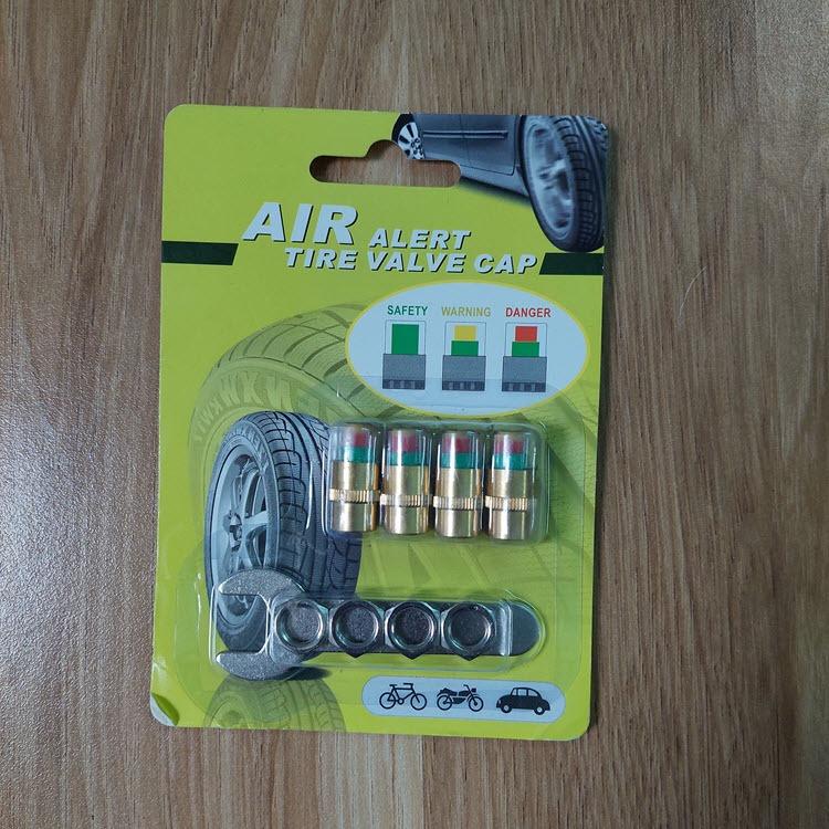 Bộ 4 Nắp Van Lốp Ô Tô bằng đồng Kiểm Tra cảnh báo Áp Suất Lốp có ốc hãm chống trộm, tặng kèm cờ lê lắp đặt dễ dàng