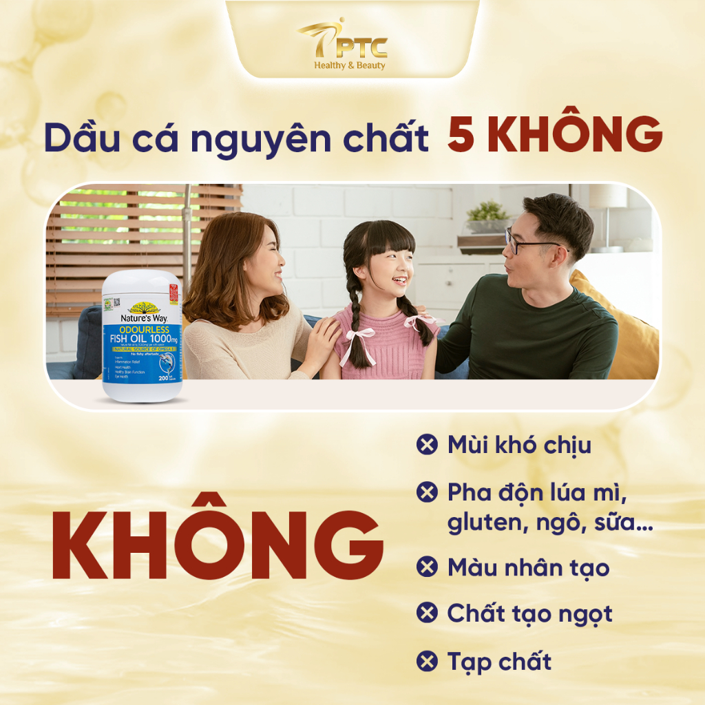 THÀNH PHẦN Mỗi viên nang mềm chứa: 1000 mg dầu cá tự nhiên Tương đương: Omega 3: 300mg, EPA: 180mg, DHA: 120mg - Sản phẩm không chứa: lúa mì, gluten, ngô, men, sữa và các