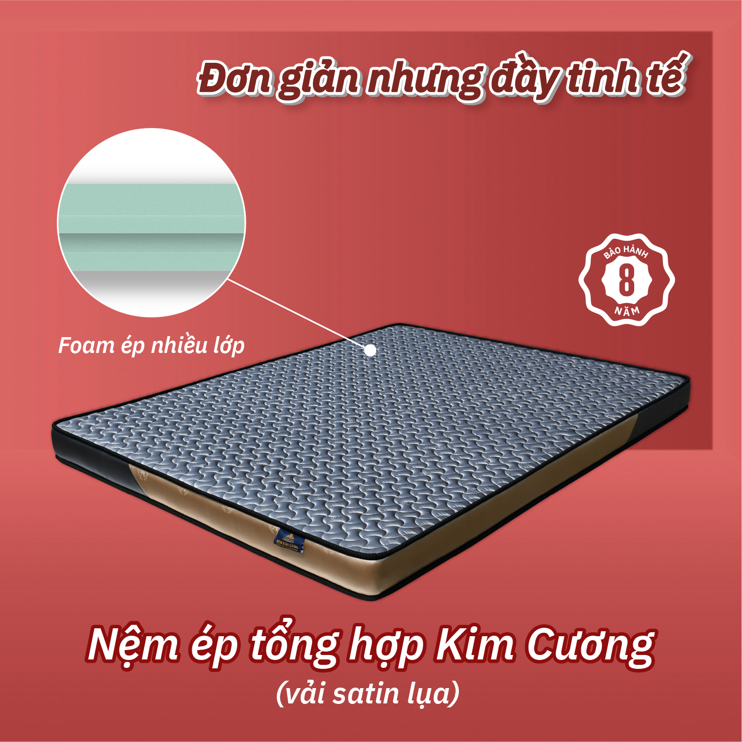 Nệm Ép Tổng Hợp Kim Cương Vải Satin Lụa bảo hành : 8 năm