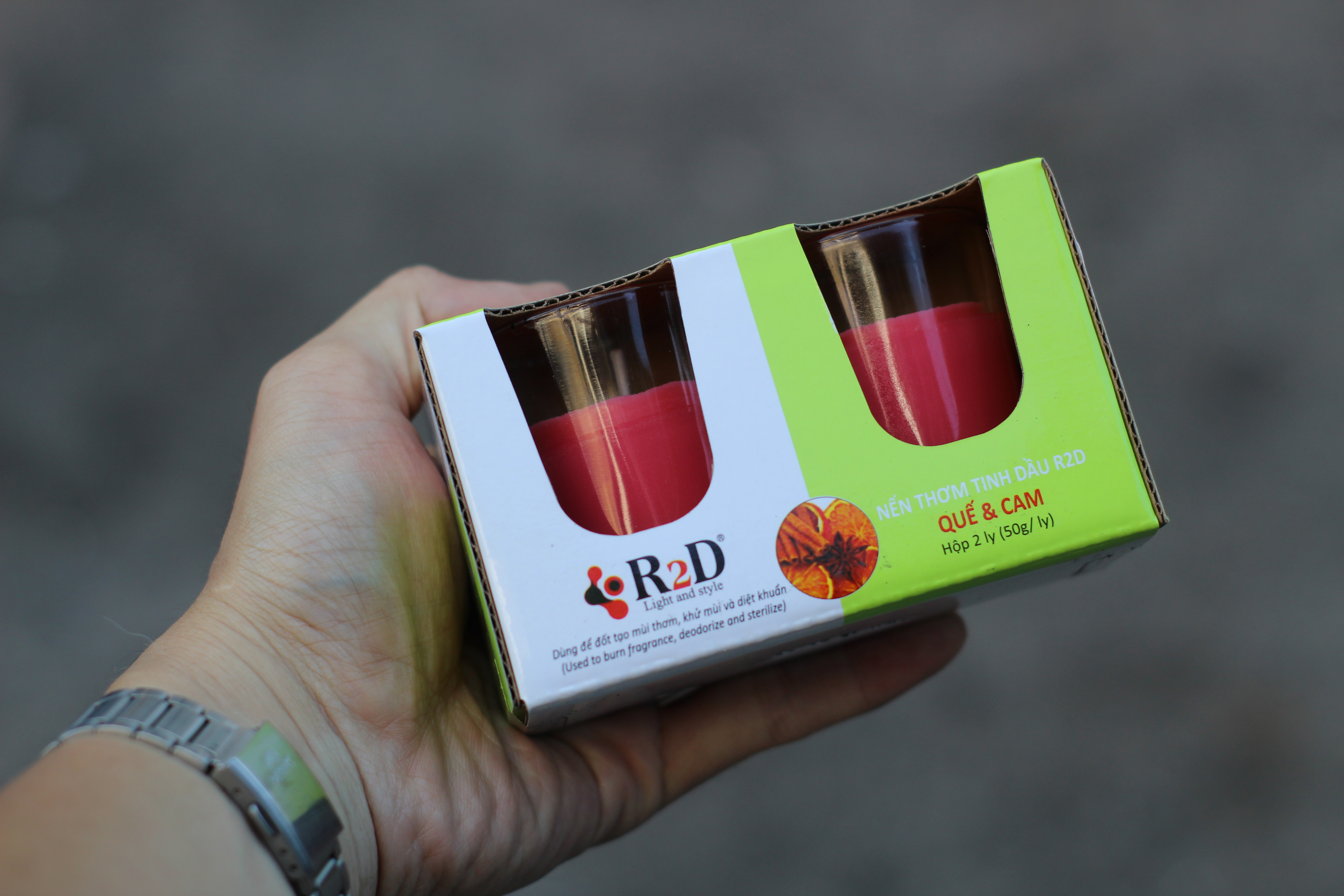 ✨Nến Thơm, Tinh Dầu Quế Cam, [Ly 50g-Hộp 2 ly], Chính Hãng Từ Shop R2D, Thành Phần Tự Nhiên, Lành Tính.